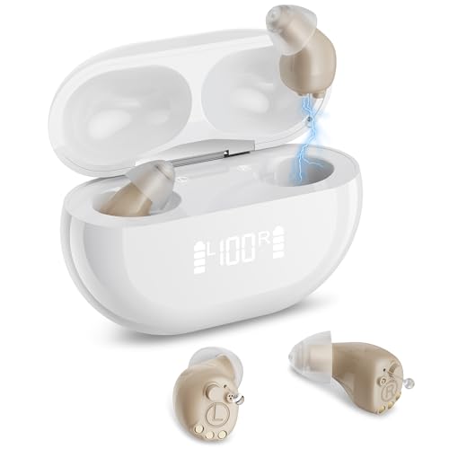 Hearing Aids for Seniors, Invisible Rechargeable Digital OTC Hearing Aids (Not Amplifiers) with 16-Channel Sound Processing Noise Cancelling Auto-On/Off