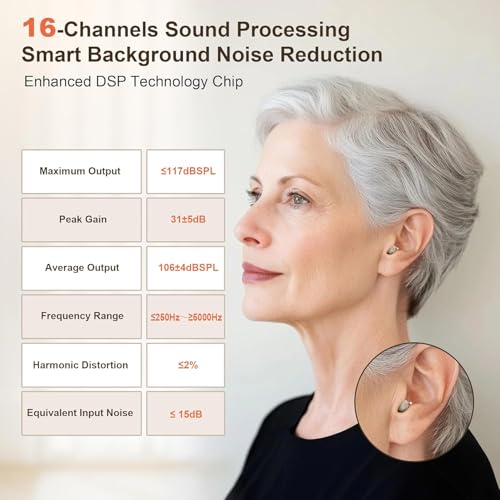 16-CHANNEL TECHNOLOGY: An all-digital DSP intelligent algorithm is used to divide the audible frequency range into 16 different channels. Each channel can be independently optimized to amplify specific frequencies, which can significantly improve the clarity of sound. You can easily understand conversations even in noisy environments. This enhanced sound processing delivers clear, natural sound quality