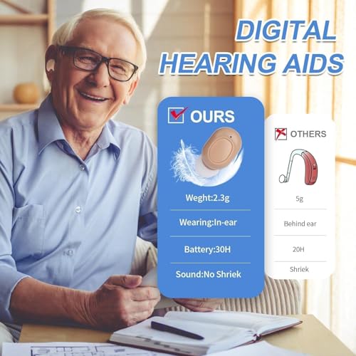 Hearing Aids, Miniature Hearing Amplifiers for Adults with Noise Cancelling, Rechargeable Hearing Aids for Seniors with Crystal Clear Sound, and LED Power Display (skin)
