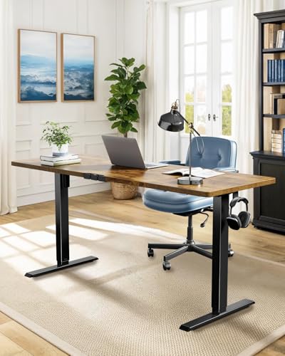 One-Touch Height Adjustment for Your Standing Desk: Tired of sitting all day? With one-touch memory presets (27.5″-46.7″), this electric standing desk smoothly adjusts to your perfect height—sit or stand in seconds! Boost energy, focus, and comfort effortlessly.