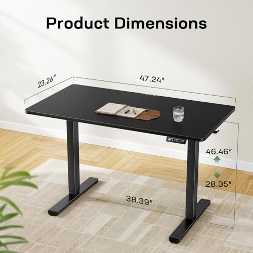 Marsail Standing Desk, Height Adjustable Desk with One-Piece Desktop, 48 x 24 inch Black Sit Stand Desk with 4 Memory Presets for Home Office & Computer Workstations (2 Packages)