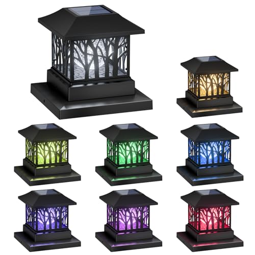 Natural Tree-Pattern Design & 4 Lighting Modes: Featuring an intricate tree pattern, Viewsun Solar Post Cap Lights blend seamlessly into gardens or wooden decks. Choose warm white, cool white, RGB solid color or gradient modes and activate dynamic rainbow cycling with a touch —perfect for Halloween ambiance or year-round nature-themed decor.